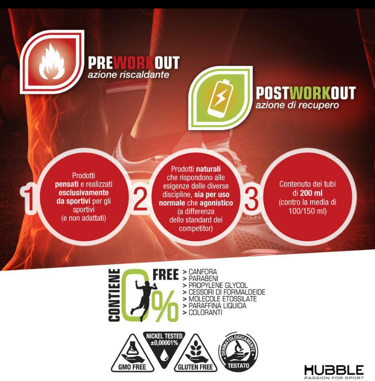 NELLA NUOVA FORMULAZIONE E TUBO DA 150 ML !!!! USA RELAX GEL BODY DEFATICANTE DOPO OGNI ATTIVITÀ SPORTIVA .Il benessere del dopo allenamento viene spesso trascurato dagli atleti. Al termine di ogni attività sportiva Hubble consiglia Relax Gel Body, per velocizzare il processo di ripristino stimolando il microcircolo. Ideale per la cura dei muscoli stanchi e rigidi, aiuta il recupero da acido lattico, tonificando e ridando vigore al corpo. Migliora la qualità della pelle, eliminando la secchezza del dopo attività sportiva, idratandola e rigenerandola dagli sforzi giornalieri. Coadiuvante per lenire irritazioni e arrossamenti. PRINCIPI ATTIVI DI QUALITÁ: Aloe Vera - Peptidi - Taurina - Mentolo - Trealosio. SPEDIZIONE GRATUITA DA 60,00 € IN TUTTA ITALIA